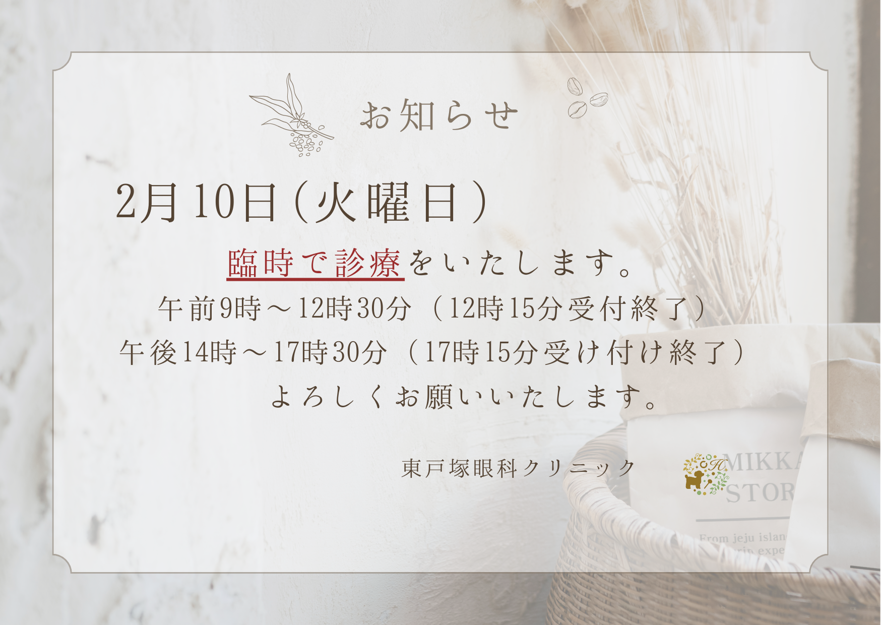 臨時で診療をいたします。